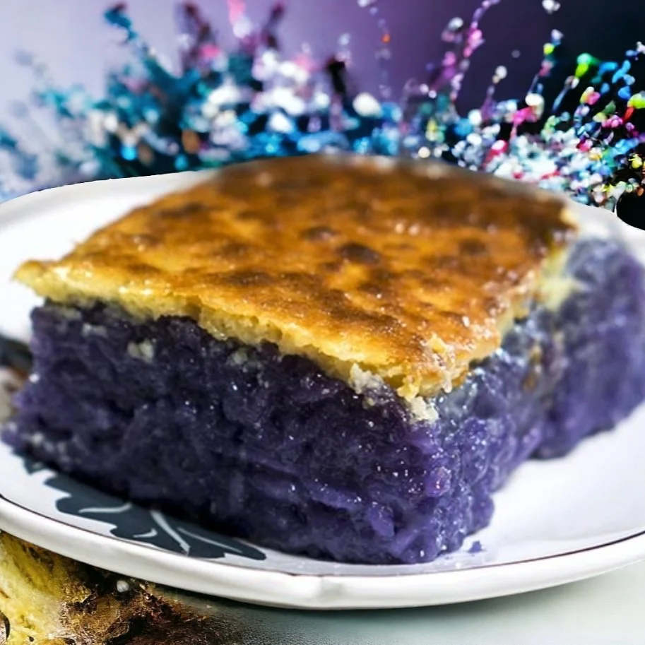 This broke-da-mouth dessert is made of ube glutinous rice, coconut milk, condensed milk & ube halaya jam. The fusion of the sticky rice & ube gives rise to a delightful purple sweet sticky rice cake called Ube Biko. It’s topped with a rich & creamy custard aka Yema.